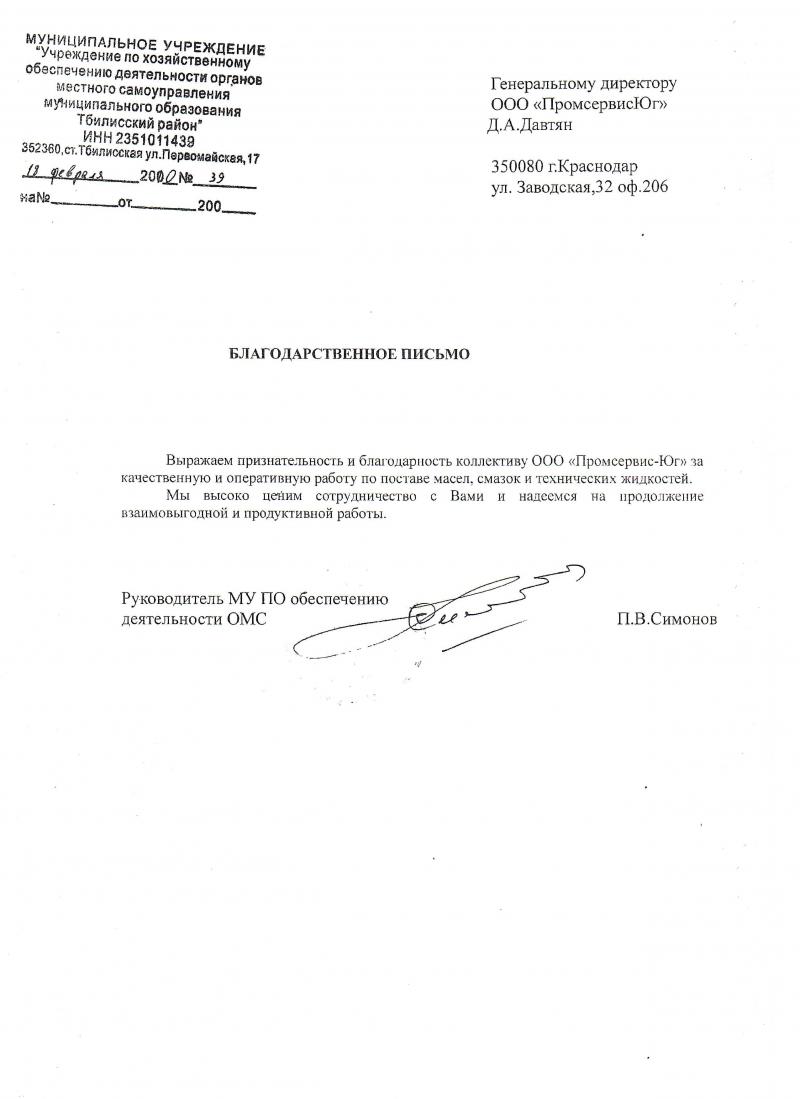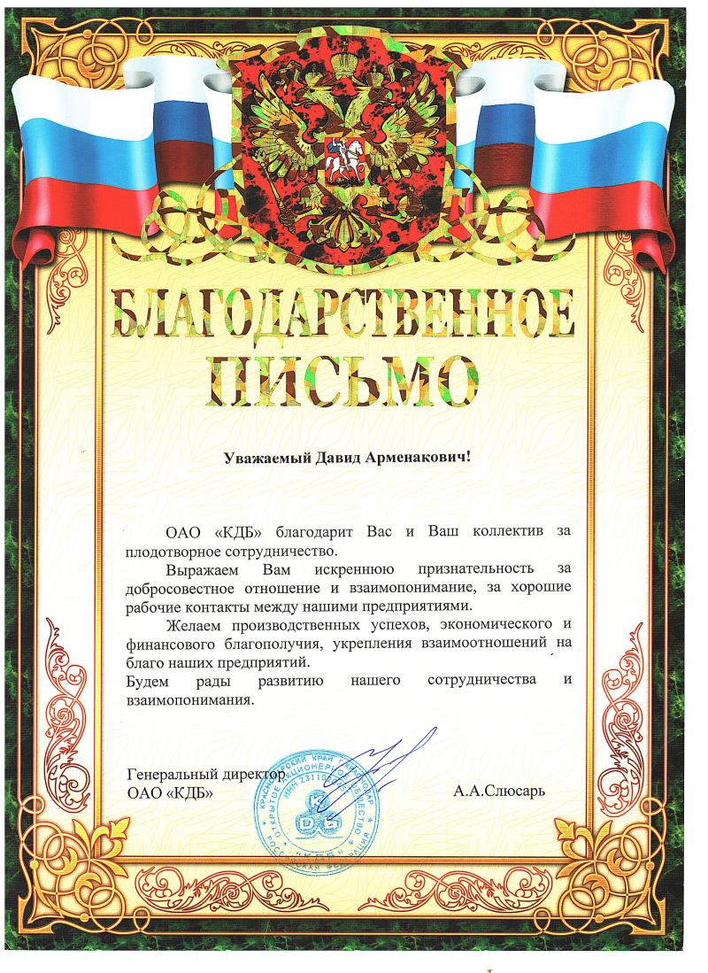 Благодарственные письма